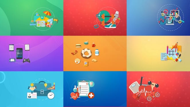 This pack provides an incredibly diverse set of animated elements that can be used in a variety of ways to create a unique video scene.